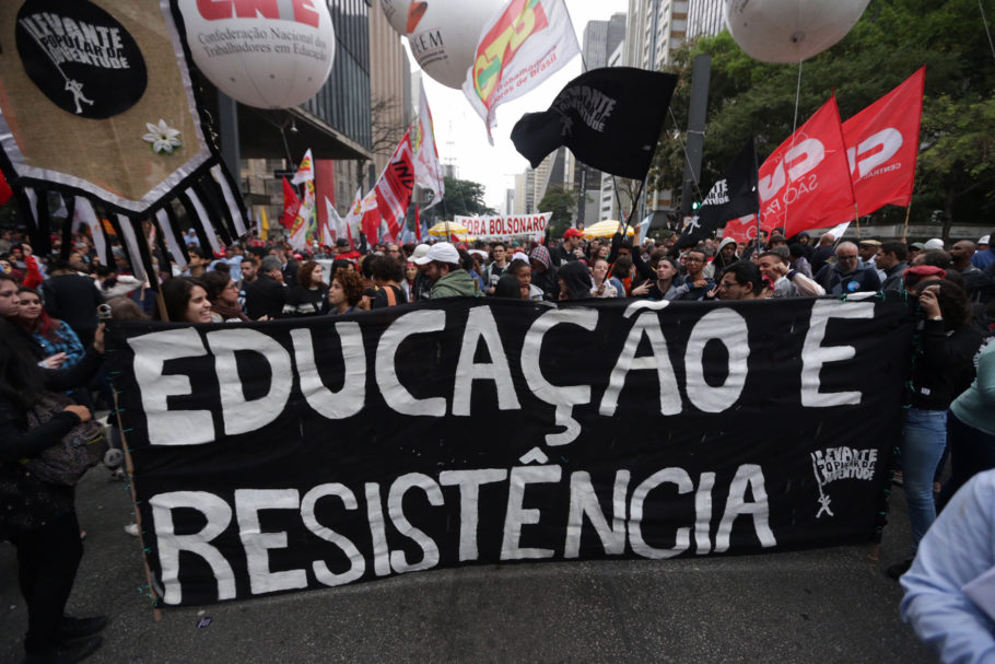 Foto: Paulo Pinto/Fotos Públicas. Ato na Avenida Paulista (SP) contra corte na educação (2019). Via Catraca Livre.