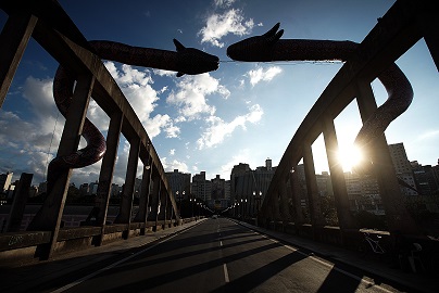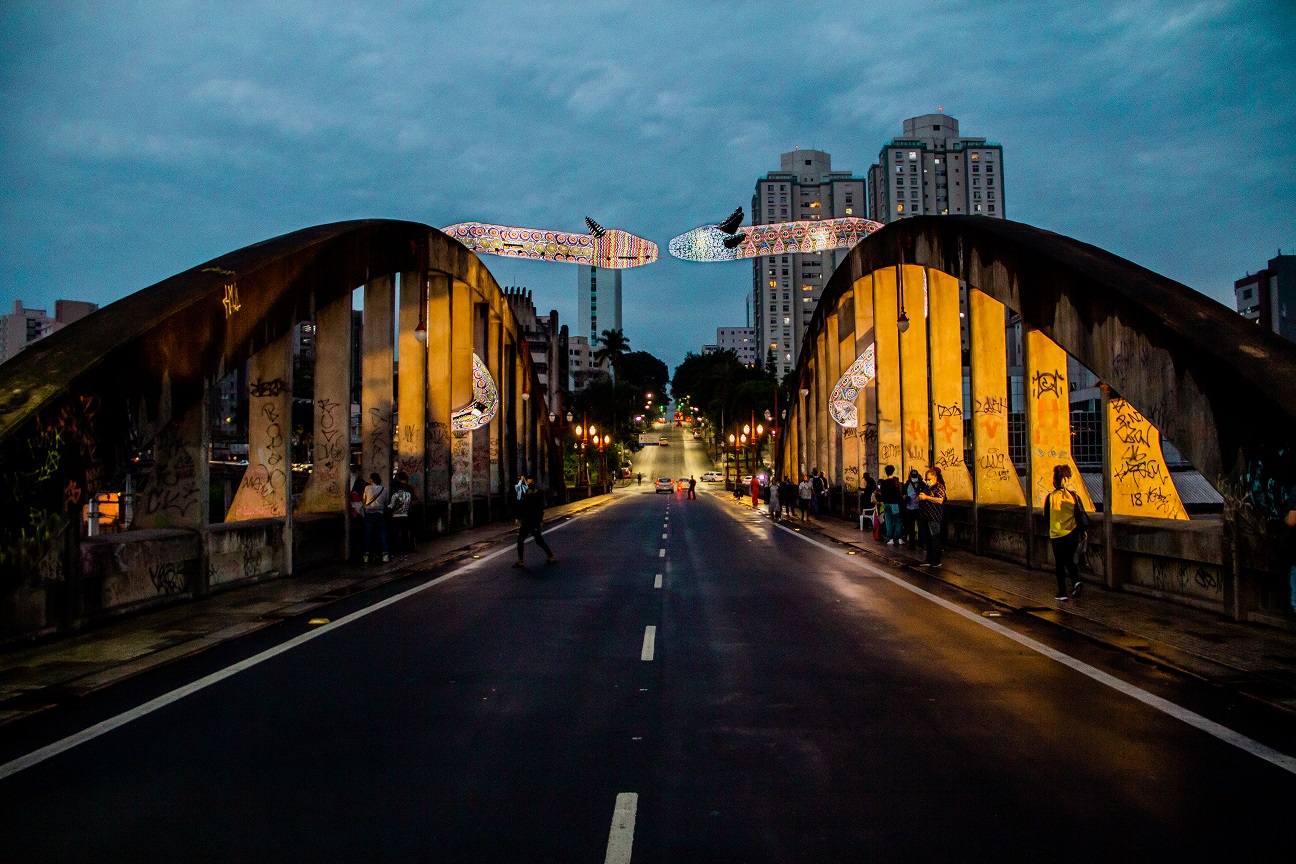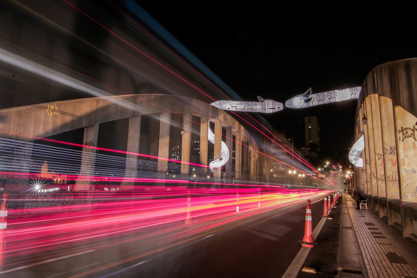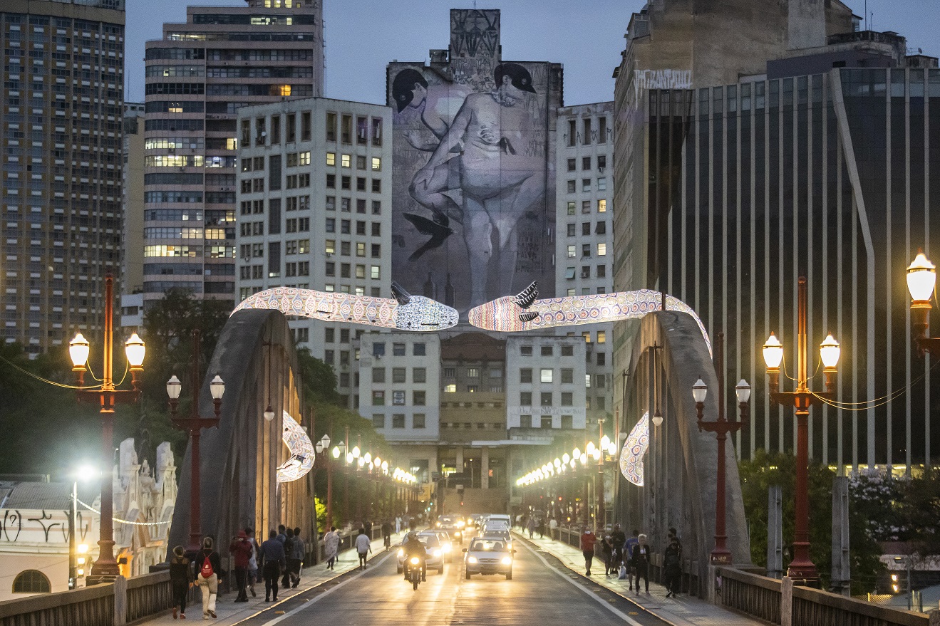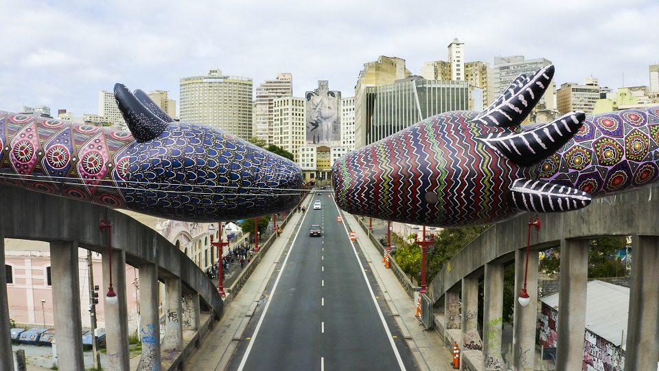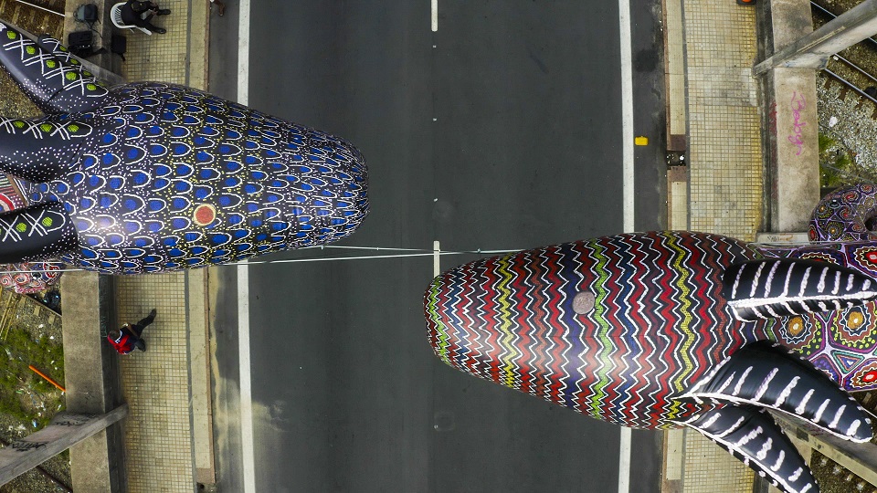 Em outubro de 2020, no Festival CURA – Circuito Urbano de Arte, você instalou a obra “Entidades” (escultura inflável com duas cobras gigantescas) sobre o tradicional Viaduto de Santa Tereza, em Belo Horizonte. O que o motivou a criá-la e qual o seu significado?
