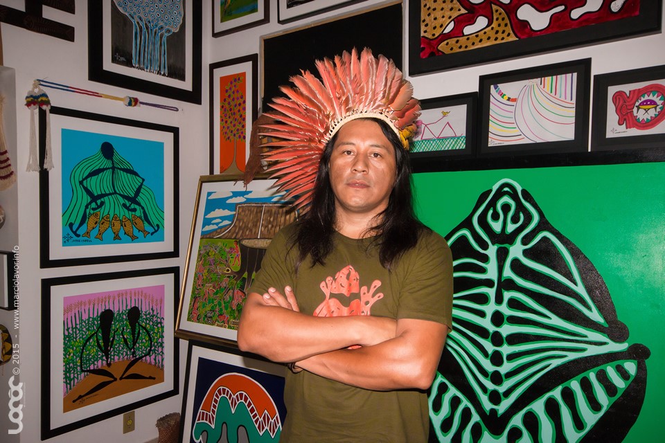 Nós somos essencialmente guerreiros. A essência do nosso existir é, e sempre será, a elevação de nossos valores. Muitos de nós que hoje nos entendemos como artistas estamos em um processo muito especial de ressignificação de nossa luta maior. Ou nem seria uma ressignificação, mas enquanto somos postos estrategicamente como investigadores de mundo, é o mundo branco que devemos decodificar. Já estamos em contato com algumas superfícies dessa sociedade, mas o nosso movimento político precisa alcançar espaços que ainda não tínhamos tido a chance. O mundo da arte, tal como nos é apresentado, é muito restritivo e não poderíamos adentrar nele sem as bênçãos e proteções de nossos guerreiros encantados. Costumo dizer que toda exposição de arte indígena nesses tempos deve ser antes de tudo um movimento coletivo de denúncias e anúncios. Denunciamos a continuidade da colonização e anunciamos que enquanto seres vivos somos muito ativos em criatividade, e que temos um ou mais sistemas próprios que operamos segundo nossos próprios valores. É um campo para trabalharmos as agendas positivas, um lugar onde a gente pode sorrir e estar orgulhoso de nossas belezas. É um mundo que decide se aproximar numa outra abordagem, algo diferente da invasão impositiva. Estamos aprendendo a lidar com essas aberturas de sensibilidades.