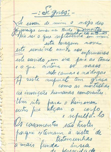 Foi nessa batida que em certa tarde de domingo toquei a campainha de uma casa em Divinópolis. A família estava almoçando, mas levantando-se da mesa, Adélia Prado – então no auge do sucesso – se prontificou a copiar improvisadamente com sua bela letra de professora o inédito que iríamos revelar ao público antes que integrasse um de seus livros.