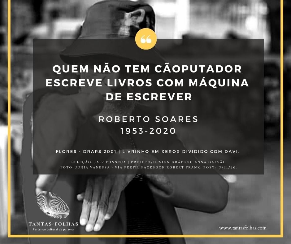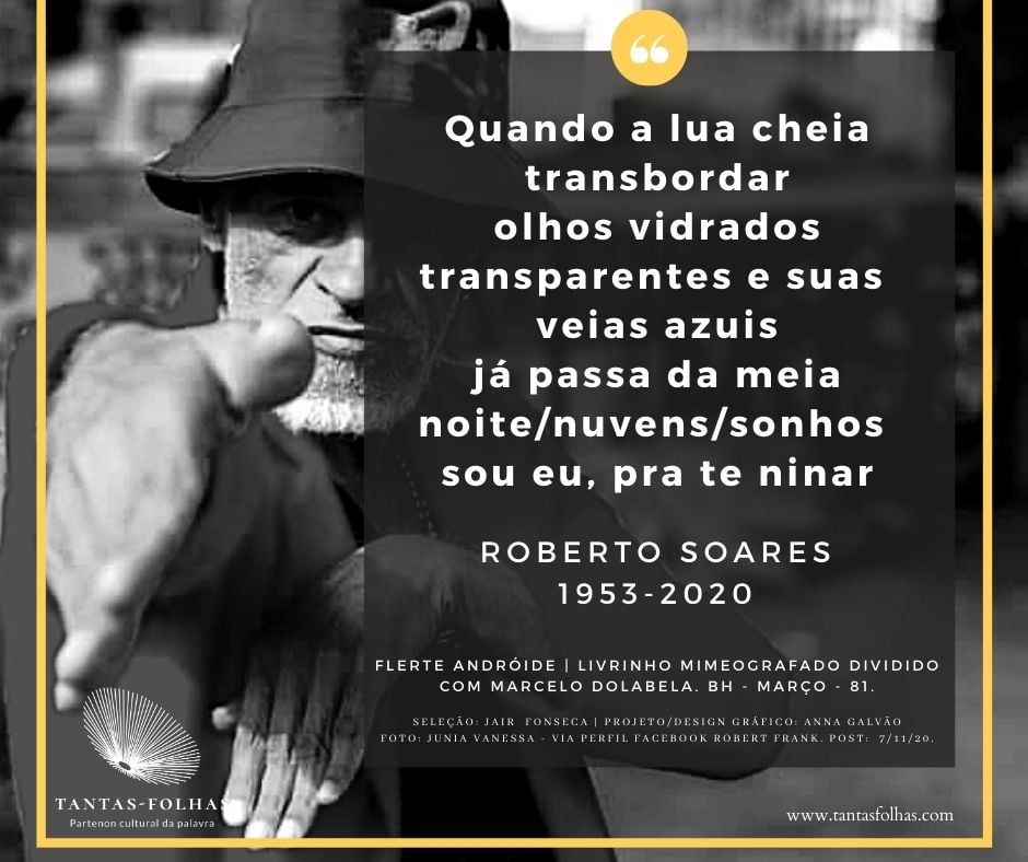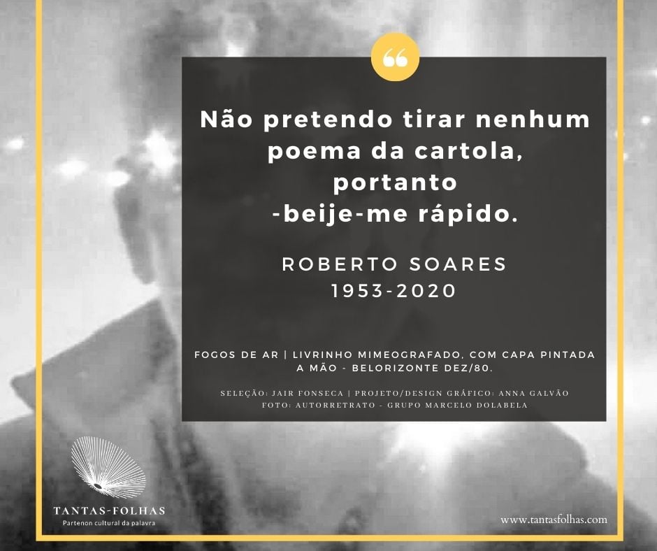 Roberto Soares morreu em 2020, pouco antes de completar 67 anos. Dos poetas reunidos em torno da revista Cemflores, a partir de 1978, em Belo Horizonte, certamente ele foi quem mais perseverou no que se costuma chamar de “vida de artista”, a qual era para ele a vida, simplesmente.